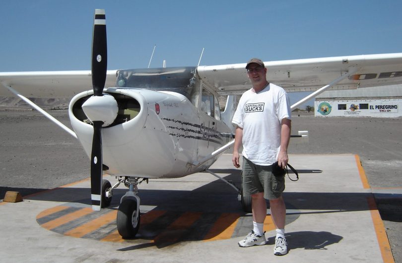 Once Jesus delivered us to Nazca’s small, desolate airport we three tourists were ushered into a viewing room and were shown a video on the lines – a British documentary actually – and next thing you know we were out on the tarmac ready to clamber into a four-seater Cessna.