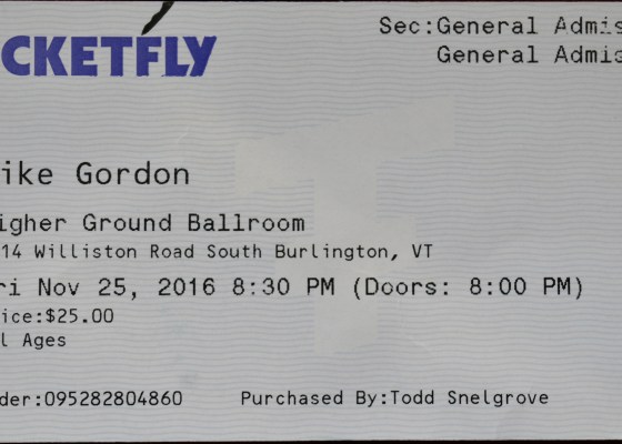 On November 25th, 2016 I drove down to Burlington, Vermont to see Phish’s Mike Gordon at Higher Ground again…