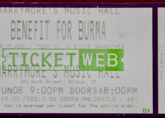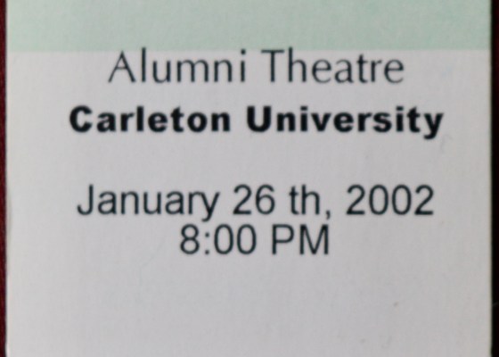 This is ticket #1 from a show that I promoted my very own self, a scary and thrilling project that brought together the amazing Baba Wizemana and the incredible Don Ross for the very first (and only?) time along with hundreds of eager music fans in the Alumni Theatre…