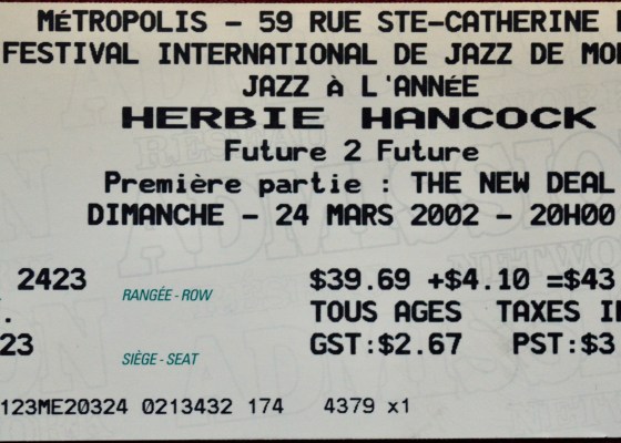 On March 24th, 2002 I witnessed a jamband fiesta at Montreal’s Metropolis at the hands of Herbie Hancock…