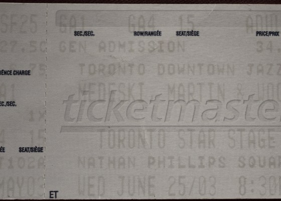 June 26th, 2003 was the Montréal leg of a two-night stint I spent following instrumental jam/jazz trio Medeski Martin & Wood from jazzfest to jazzfest…