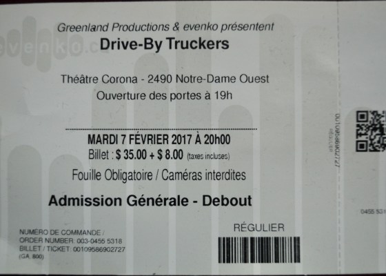 On February 7th, 2017 m’lady and I drove to Montreal to see the Drive-By Truckers. Before the show we had a drink in our hotel lobby bar and decided to walk to the show. It was fairly mild for a February night and the walk was relatively short and quite pleasant…