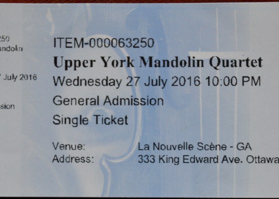 I was thrilled and excited for the chance to hear Kevin lead his Mandolin Quartet on July 27th, 2016 at a new Ottawa venue on King Edward Street called La Nouvelle Scène…