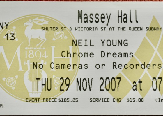 On November 26th, 2007 I sat down for the first of three almost-consecutive nights of Neil Young performing live at Massey Hall…