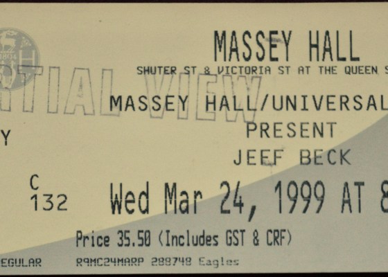 On March 24th, 1999 I went to see the legendary Jeff Beck at Toronto’s even more legendary Massey Hall…