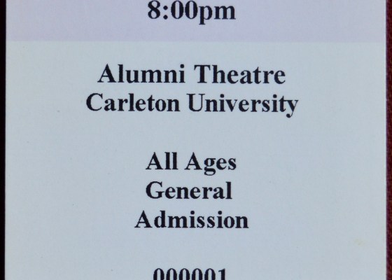 This is ticket #1 from a show that I promoted my very own self, a scary and thrilling project that brought together the amazing Baba Wizemana and the incredible Don Ross for the very first (and only?) time along with hundreds of eager music fans in the Alumni Theatre…