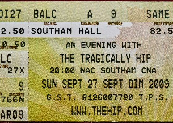On September 27th, 2009 I walked to the National Arts Centre to see the second night of a three-night Tragically Hip run…