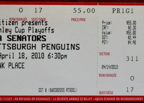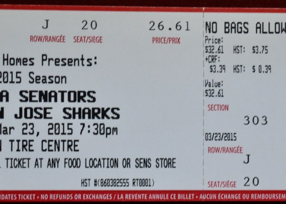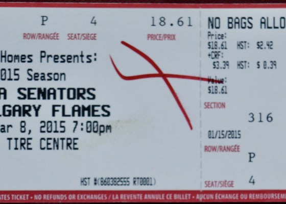 An astute observer will notice not one, but two extraneous-looking scribbles on my ticket stub from the Sens/Red Wings game on November 16th, 2015…