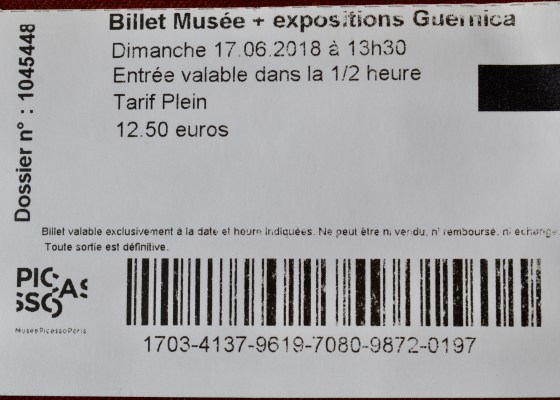 After exploring room after room of Picasso’s sketches and smaller studies I entered a large room that held a woodcut of the full Guernica masterwork…