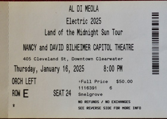 January 16, 2026 Al Di Meola / Ticket Stories 011625 Al Di Meola, Clearwater, FL From the outset this show was fire…